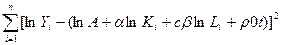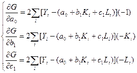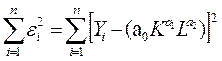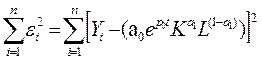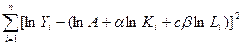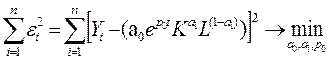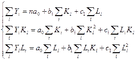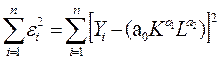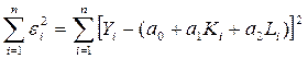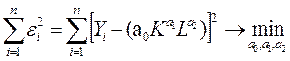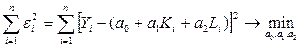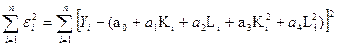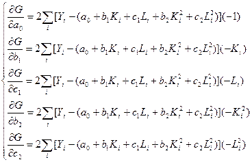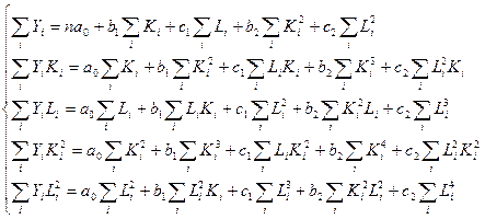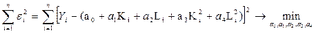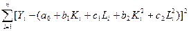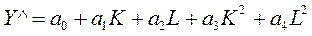 Y = a0 + b1 K + c1 L + b2 K2 + c2 L2
