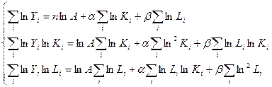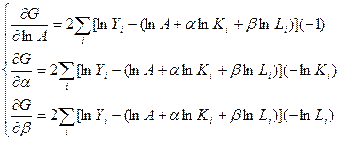 Таким образом, для данной отрасли мы выбираем производственную функцию Кобба-Дугласа при α+β=1, которая выглядит следующим образом: