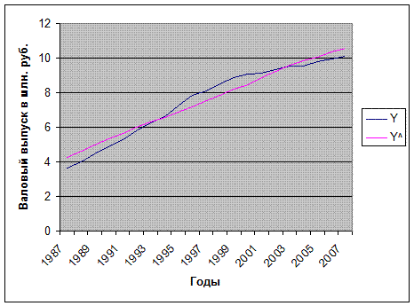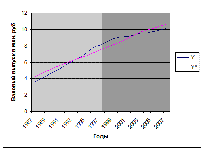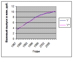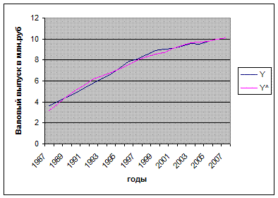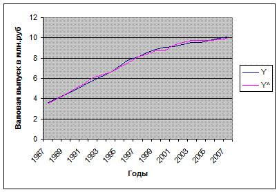 Рис. 6 Графическое представление результатов аппроксимации производственной функции