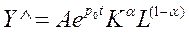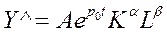 Y^ = 1,6643*e -0,0087 *K 0,03954 *L 2,72382