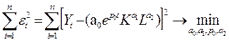 где А — коэффициент нейтрального технического прогресса; а1 , a2 -коэффициенты эластичности по труду и капиталу.