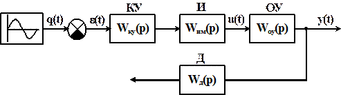 Передаточные функции объекта управления (ОУ), исполнительного механизма (ИМ), датчика (Д) и корректирующего устройства (КУ):