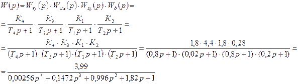 Тогда передаточная функция данной системы выглядит следующим образом: