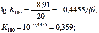 проведем линию до пересечения с ЛФЧХ, полученную точку поднимем до пересечения с ЛАЧХ и проведем горизонтальную линию до пересечения с осью амплитуды. Полученное значение коэффициента передачи при фазовом сдвиге