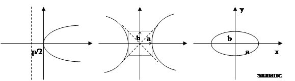№33 Кривые второго порядка на плоскости (эллипс, гипербола, парабола).