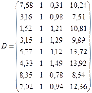 Складемо матрицю вихідних даних: