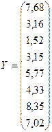 - відповідно фактичні та розрахункові значення обсягу середньорічного виробництва за моделлю (регресант);