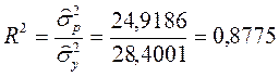 Одной из наиболее эффективных оценок точности модели, мерой качества уравнения регрессии и характеристикой прогностической силы анализируемой регрессионной модели является коэффициент детерминации R 2 .
