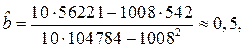 Для оцінки коефіцієнтів моделі використовуємо 1МНК.
