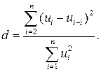 Для того чтобы доказать, что значение уровней остатков модели являются независимыми величинами (т.е. доказать отсутствие автокорреляции) можно используя широко известную статистику Дарбина-Уотсона ( d ) , которая определяется следующим образом: