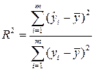 показывает какая часть вариации регрессанта может быть объяснена вариацией выбранного регрессора и характеризует качество подгонки регрессионной модели к наблюдаемым значениям y