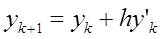 Для стартования метода (2.1.7) необходимы сведения о четырех предыдущих точках . Соответственно данный метод требует вычисления стартующих данных . Воспользуемся для нахождения второй точки одношаговым методом Эйлера , который имеет вид :