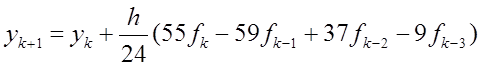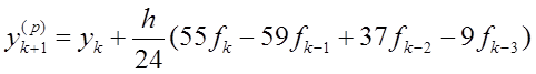 Теперь воспользовавшись явной формулой (2.1.7) , и неявной формулой (2.1.12) , используя их совместно , мы приходим к методу Адамса-Башфорта четвертого порядка :