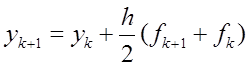 является методом Адамса-Моултона четвертого порядка . В силу того , что по сути fk+1 – неизвестная , то методы Адамса-Моултона (2.1.11),(2.1.12) называют неявными . В тоже время методы Адамса-Башфорта – называют явными .
