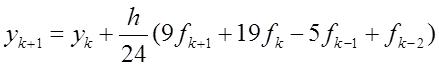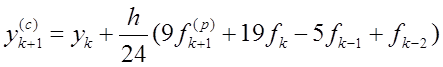 , которое в свою очередь используется в формуле Адамса-Моултона . Таким образом формула Адамса-Моултона “корректирует” корректирует приближение , называемое формулой Адамса-Башфорта .
