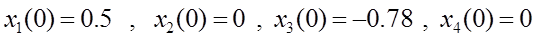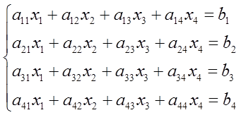 Как типичный пример решения систем линейных дифференциальных уравнений , рассмотрим систему четырех линейных алгебраических уравнений .