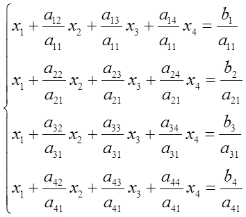 Для решения системы четырех линейных алгебраических уравнений с четырьмя неизвестными модифицированным методом Гаусса необходимо