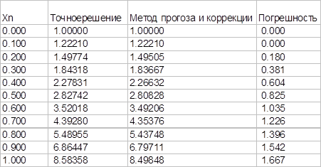 Таким образом , подставляя начальные условия, мы находим вторую точку . Следует заметить , что степень точности совпадает со степенью точности остальных методов , что является существенным фактором в стартовании метода прогноза и коррекции .