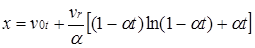 или, выполняя интегрирование после разделения переменных и считая х= 0 при t =0, получаем