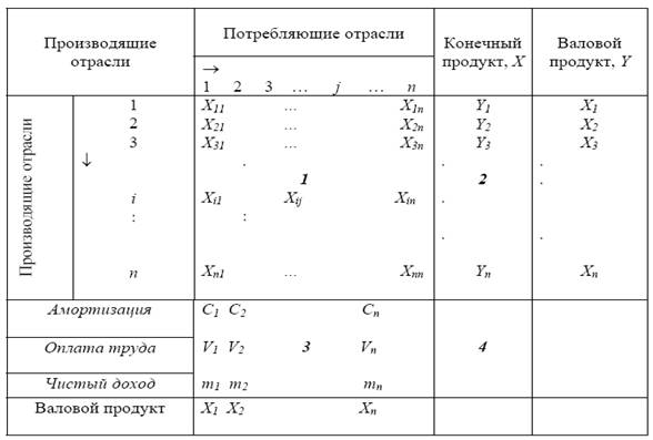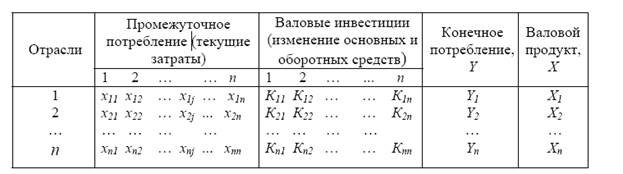 Межотраслевой баланс представляет собой экономико-математическую модель, образуемую перекрестным наложением строк и колонок таблицы, то есть балансов распределения продукции и затрат на ее производство, увязанных по итогам. Главные показатели здесь – коэффициенты полных и прямых затрат.