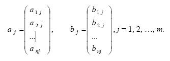 Это означает, что при единичных интенсивностях j -го производственного процесса потребляется вектор продуктов a j и производится продуктов b j . Векторы (1) рассматриваются в натуральных единицах или в постоянных ценах.