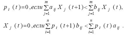 Первое соотношение в (4) означает, что цена i -го продукта в году t равна нулю, если его выпуск в году t будет больше его затрат в году (t + 1).