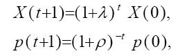 где Х (0) и р (0) – начальные значения векторов в году t = 0.