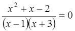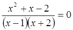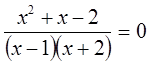 Мы знаем, что дробь равна нулю в том случае, когда ее числитель равен нулю, т.е. х²+х–2=0, а знаменатель не равен 0. Решая уравнение х²+х–2=0, находим корни х1=1, х2 = –2 . Но число 1 не входит в ОДЗ данного уравнения и значит, исходное уравнение имеет один корень х=-2.