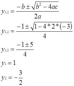 Введем новую переменную Тогда получим 2y²+y–3=0 – квадратное уравнение относительно переменной y. Найдем его корни: