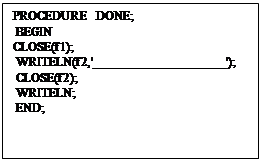 Данная процедура с помощью оператора вывода WRITE записывает результаты в файл, соответствующий файловой переменной F2, назначенной коммандой ASSIGN в процедуре INIT