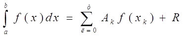 по заданным или вычисленным значениям подинтегральной функции f(x) в некоторых точках ( узлах ) отрезка [ a, b].