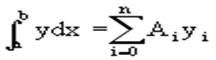 функцию f(x) будем исать в виде когда f(x) многочлен вида f(x)=ao+a1x+...+anxn . Проинтегрировав, преобразовав и подставив значения многочлена в узлах