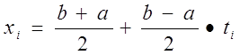 c[i]:=((b+a)/2+(b-a)/2*t[i]);