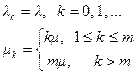 - среднее число клиентов, поступивших в систему, когда система находится в состоянии k в единицу времени.