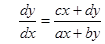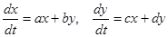 Знайдемо сепаратриси сідла, тобто прямі, що розділяють гіперболи різних типів, які є фазовими кривими системи (тобто асимптоти цих гіпербол). Розділивши друге рівняння вихідної системи на перше рівняння, одержуємо