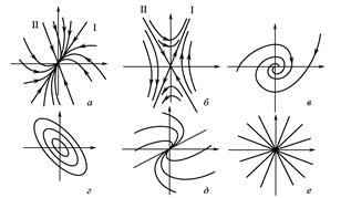 Рис.2. Положення рівноваги й інтегральні криві [6]