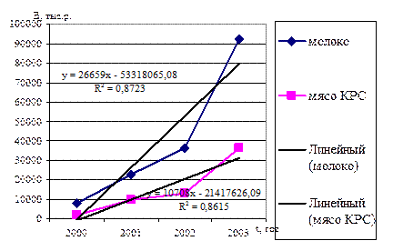 Все описанные выше виды моделей применимы к описанию структуры производства продукции, в частности животноводческой. Динамика производства продукции может быть описана с помощью трендовой модели. трендовые модели позволяют прогнозировать многолетнее развитие отрасли. поскольку ряд показателей производства несет в себе неопределенность, широкое распространение получили стохастические модели.