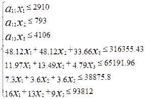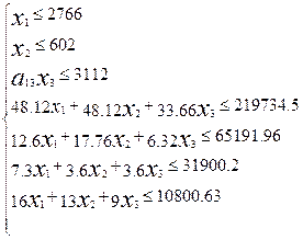 Ограничений первого и второго типов в задаче может быть множество: по каждому виду материалов, топлива, энергии, оборудования, численности работников, финансового ресурса, мощности предприятий и т.д.[31].