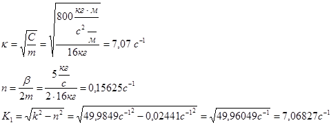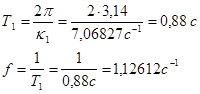 2. Определение круговой,собственной частоты колебания и удельного коэффициента демфирования: