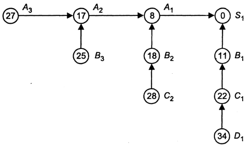 сумма составляет 13 + 11 = 24. Из двух вариантов суммарных издержек выбираем наименьшую (18) и обозначаем стрелкой условно оптимальный переход