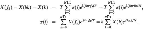Дискретные значения частот в преобразовании (4) обусловлены конечной длиной записи, т.е. конечностью временного ряда. Здесь для краткости, как и в случае непрерывно-дискретного преобразования, вместо x( iT) используется обозначение x( i) . Точно также вместо X( bk) записано X( k) . Величина b зависит от интервала дискретизации: b=( NT)Г1 .