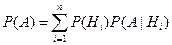 Пусть событие А может быть реализовано только при условии появления одного из событий Hi , i = 1,..., n. Предположим, что события Hi несовместны, образуют полную группу (т.е. в результате испытания непременно произойдет одно из них) и вероятности их до опыта известны.. Такие события Hi называются гипотезами. Тогда вероятность события А можно вычислить с помощью формулы полной вероятности: