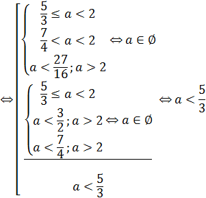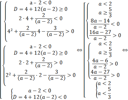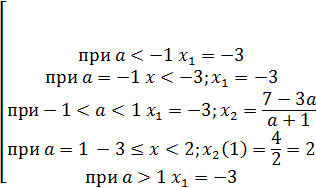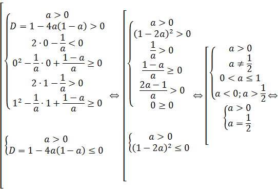 Изобразим результат исследования графически на оси параметра а , как и в предыдущем примере.