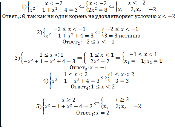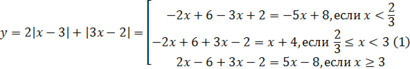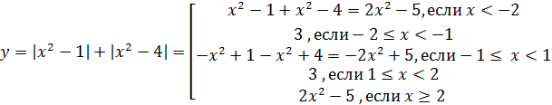 Теперь алгебраическая запись данной функции на различных участках числовой оси выглядит следующим образом: