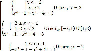 Теперь ясно, что данное уравнение равносильно совокупности трех систем.
