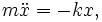 Рассмотрим механическую систему, состоящую из пружины, закрепленной с одного конца, и груза массой m, прикрепленного к свободному концу пружины. Будем считать, что груз может двигаться только в направлении оси пружины (например, движение происходит вдоль стержня). Построим математическую модель этой системы. Будем описывать состояние системы расстоянием x от центра груза до его положения равновесия. Опишем взаимодействие пружины и груза с помощью закона Гука (F = − kx) после чего воспользуемся вторым законом Ньютона, чтобы выразить его в форме дифференциального уравнения: