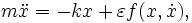 — некоторая функция, в которой может учитываться сила трения или зависимость коэффициента жёсткости пружины от степени её растяжения,