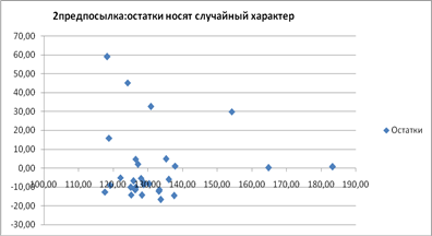 Из графика зависимости остатков εi от теоретических значений результативного признака видно, что точки распределены случайно, следовательно, εi представляют собой случайные величины и МНК оправдан.