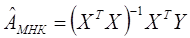 Подставляя соответствующие значения в формулу рассчитаем МНК - оценки для параметров А .