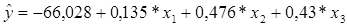 Y =-152,2248+33,8819*X1-0,0526*X2